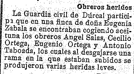 7 de mayo de 1914. Se caen del olivo al cogerlos robando