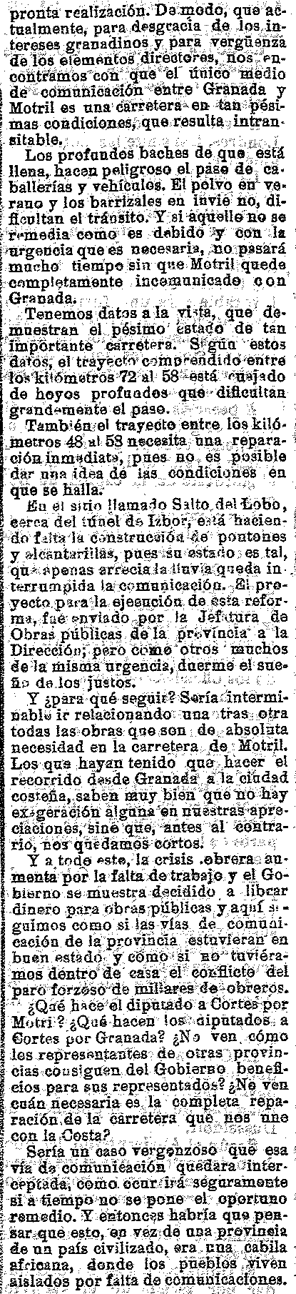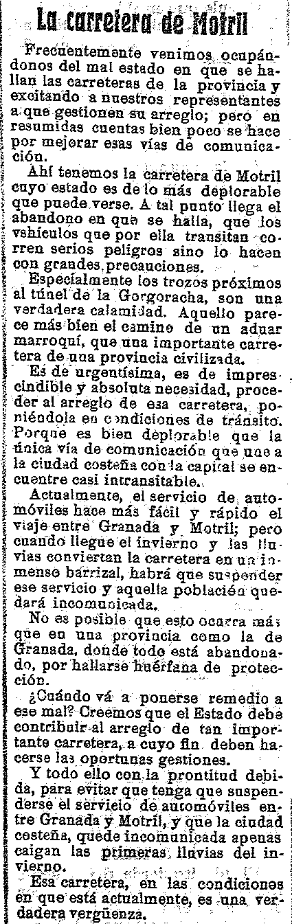 17 de septiembre de 1914. La carretera de Motril en mal