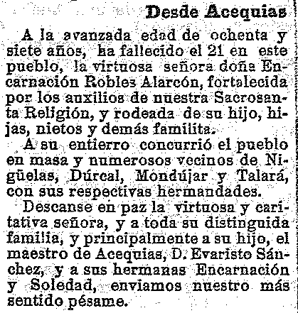 25 de septiembre de 1914. Fallece Doña Encarnación Robles