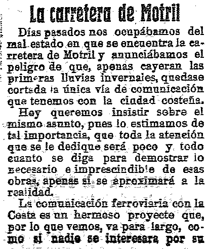 26 de septiembre de 1914. La carretera de Motril en mal