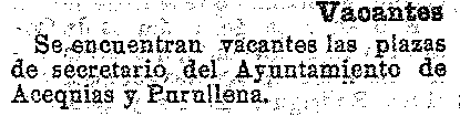 30 de septiembre de 1914. Vacante la plaza de secretario de