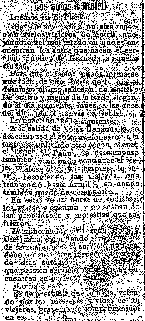 29 de abril de 1915. Los autos que van de Granada a Motril