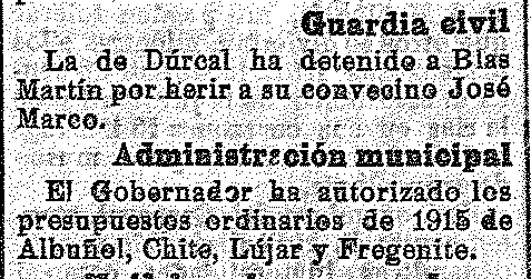 17 de febrero de 1915. Detención en Dúrcal y presupuestos de