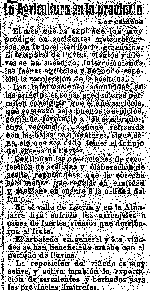 4 de febrero de 1915. La agricultura en la provincia. En el