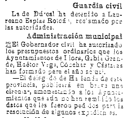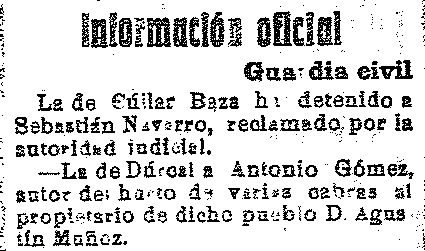 22 de enero de 1916. Detenido en Dúrcal por robar cabras