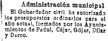14 de enero de 1916. Detención en Dúrcal. Presupuestos de