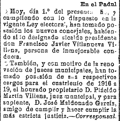 4 de enero de 1916. Toma posesión el nuevo ayuntamiento del