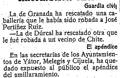 18 de mayo de 1916. Rescatada una caballería en Dúrcal robada