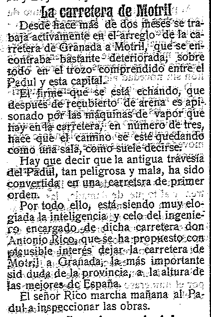 28 de mayo de 1916. La carretera de Granada a Padul se está