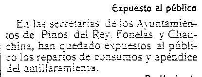 3 de mayo de 1916. Consumos de Pinos del Rey