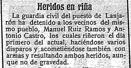 4 de mayo de 1916. Detención en Lanjarón por peleas con armas