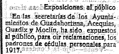 27 de octubre de 1916. Padrones de cédulas en Acequias