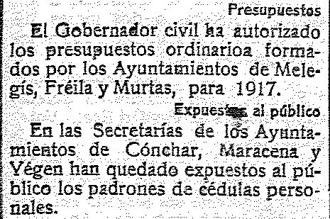 31 de octubre de 1916. Presupuestos de Melegís
