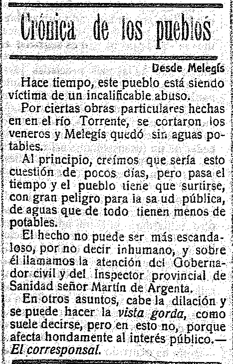 Torrente han cortado los veneros y las fuentes de Melegís