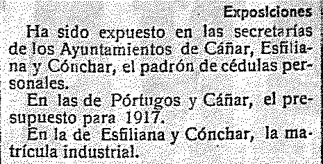 7 de octubre de 1916. Padrón y matrícula de Cónchar.