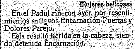 17 de septiembre de 1916. Riña de mujeres en Padul
