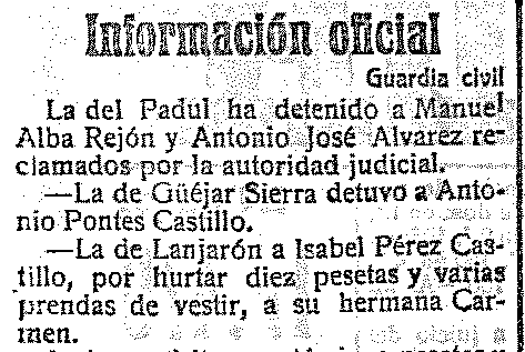 10 de septiembre de 1916. Detención en Lanjarón por estafa