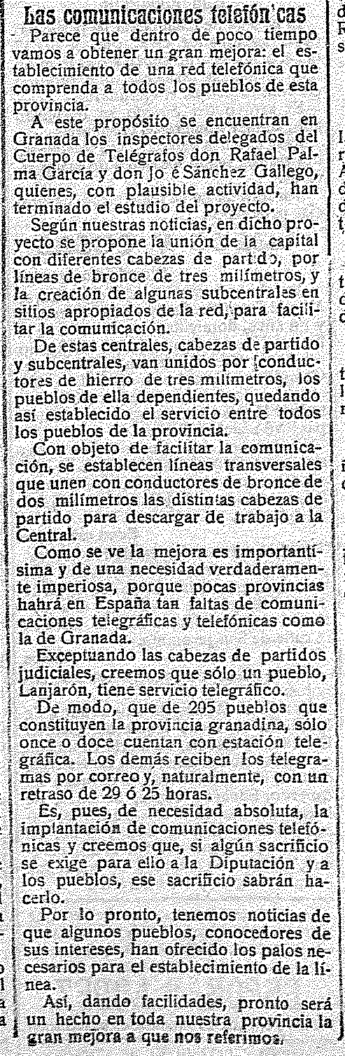 Proyecto de telefonía en la Provincia. Actualmente sólo la tienen los pueblos
