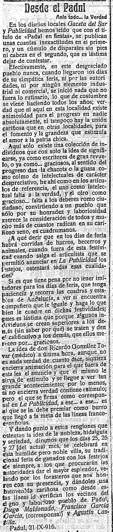 23 de septiembre de 1916. Desde Padul se defienden de dos