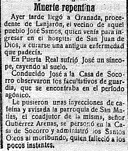 25 de abril de 1917. Vecino de Lanjarón muere en la puerta