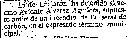 5 de abril de 1917. Detenido en Lanjarón por incendiar seras