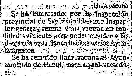 10 de junio de 1917. Linfa vacuna en el Padul
