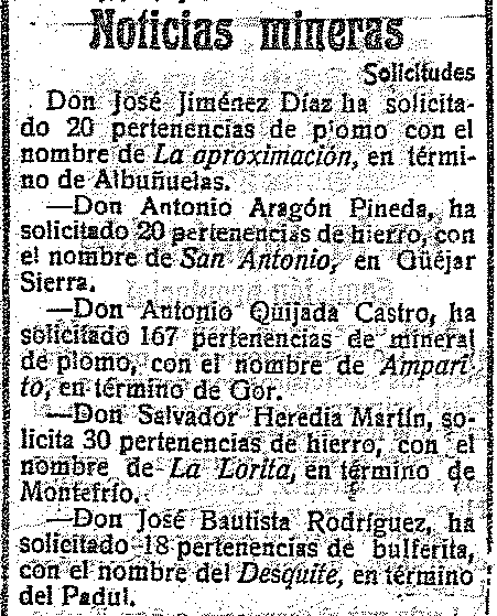 1 de junio de 1917. Minas de Albuñuelas y de Padul