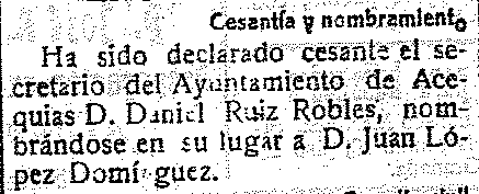 4 de junio de 1917. Cambio de secretario de ayuntamiento en