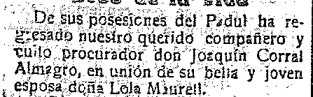 6 de junio de 1917. Procurador Joaquín Corral regresa de