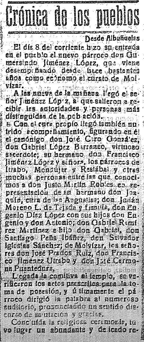 16 de julio de 1918. Llega el nuevo párroco a Albuñuelas