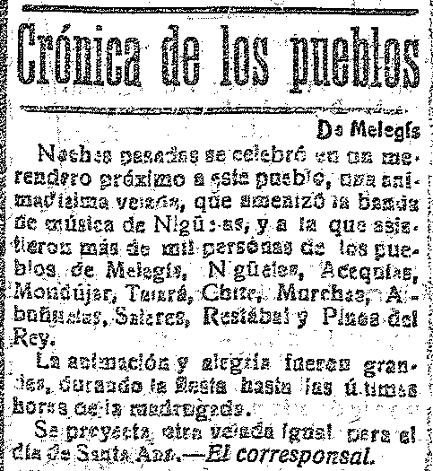 20 de julio de 1918. Velada en un merendero de Melegís donde