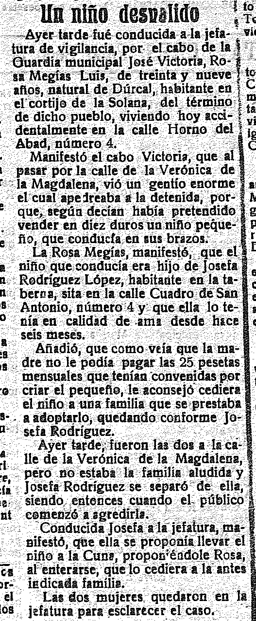 3 de julio de 1918. Una durqueña intenta vender un niño