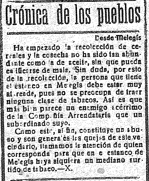 3 de julio de 1918. El estanquero de Melegís no abastece de