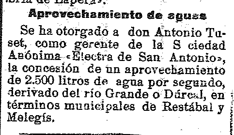 14 de agosto de 1919. Se concede a Don Antonio Tuset gerente