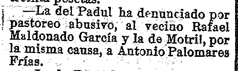 22 de agosto de 1919. Denuncia en Padul por pastoreo abusivo