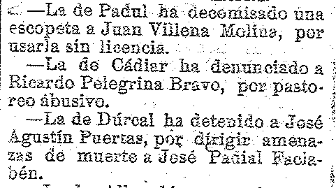29 de agosto de 1919. Decomisada escopeta en Padul. Detención