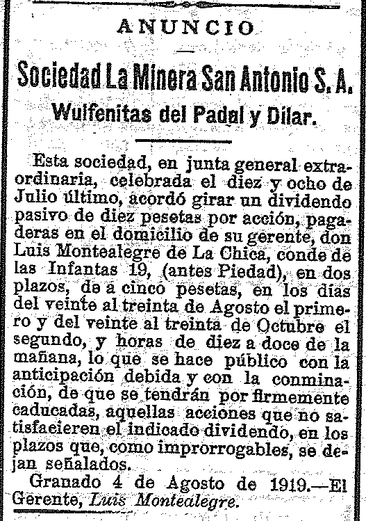 15 de agosto de 1919. Minas de Albuñuelas