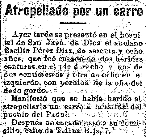 11 de diciembre de 1919. Herido por un carro en el Padul