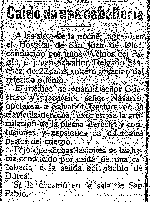12 de diciembre de 1919. Caído de una caballería en el Padul