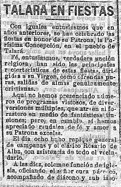 12 de diciembre de 1919. Talará en fiestas