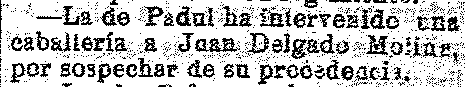16 de diciembre de 1919. Se interviene una caballería en el
