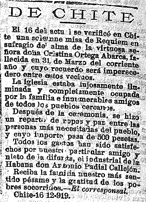 19 de diciembre de 1919. Misa de Réquiem en Chite por doña