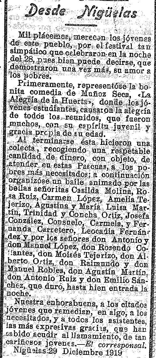31 de diciembre de 1919. Festival en Nigüelas