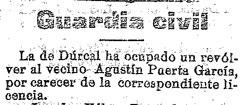 3 de diciembre de 1919. Se ocupa un revólver en Dúrcal
