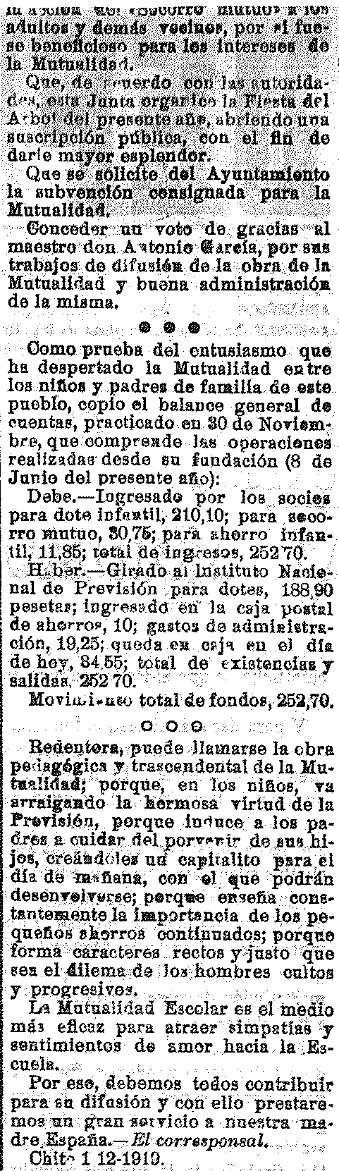 3 de diciembre de 1919. Reunión de la Mutualidad escolar de