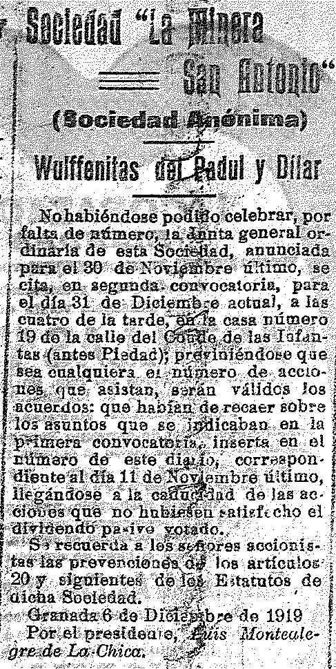 9 de diciembre de 1919. Sociedad Minera San Antonio de