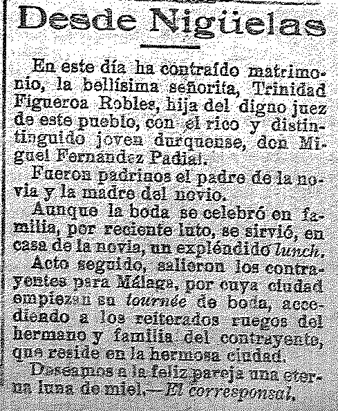 11 de noviembre de 1919. Se casa la hija del juez de Nigüelas