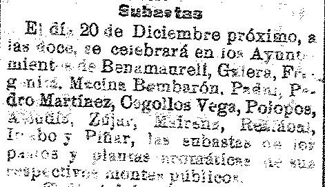 14 de noviembre de 1919. Subasta de Pastos y plantas