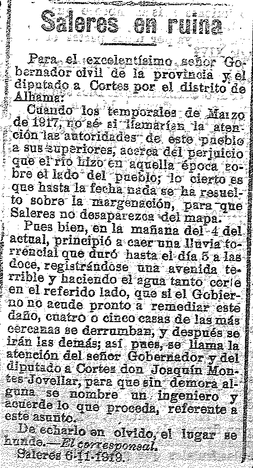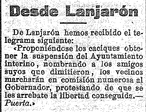 28 de noviembre de 1919. Conflicto en Lanjarón entre los