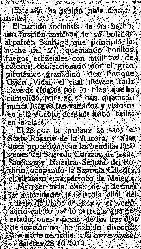 1 de noviembre de 1919. Fiestas de Santiago en Saleres